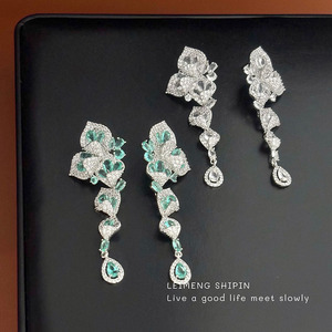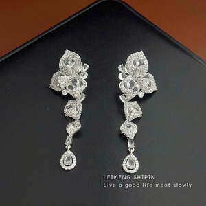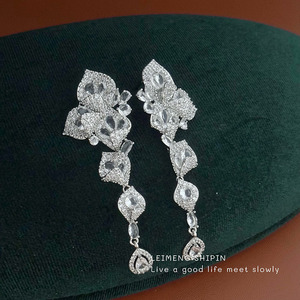 高档重工镶嵌锆石晚宴耳环时尚礼服搭配奢华优雅气质锆石花朵耳环
