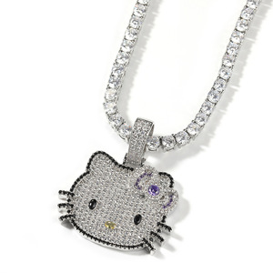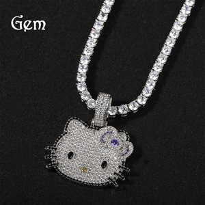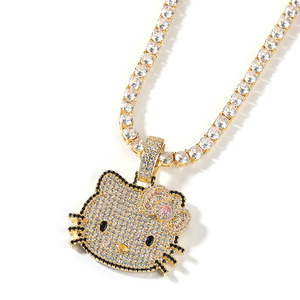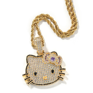 嘻哈新款潮酷可爱小号卡通猫咪吊坠简约时尚甜酷风毛衣链项链批发