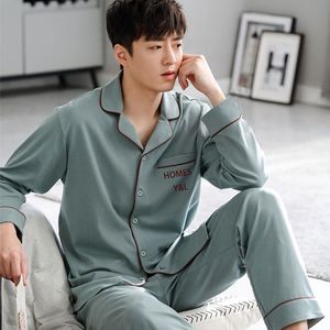 睡衣男款纯棉纯棉长袖家居服春秋青少年帅气纯色秋冬套装