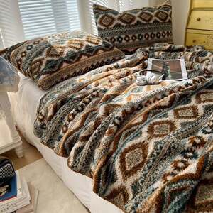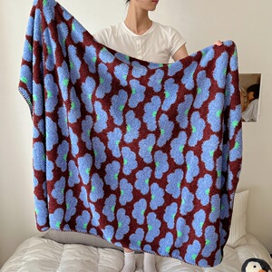 半边绒三角针毛毯毯子花间厂家直供针织毯A类高级感半边绒毯子
