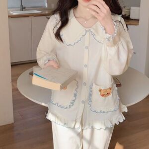 ins风甜美可爱小熊睡衣女春秋季长袖长裤套装美少女可外穿家居服