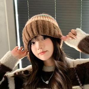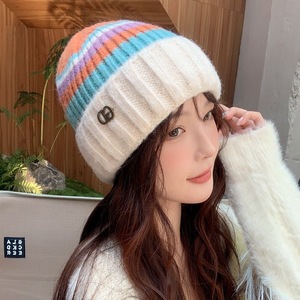 新款条纹针织冬季秋冬韩版秋冬季大头时尚护耳保暖百搭毛线帽帽子