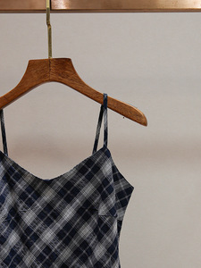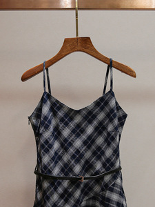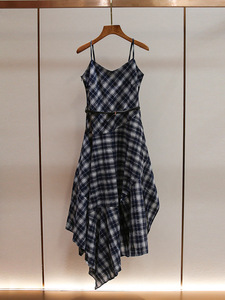 深圳南油高端女装秋季新款海边法式不规则荷叶边吊带格子连衣裙女
