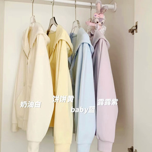 十三行秋冬季新款韩版糖果系宽松连帽卫衣外套品牌女装批发货源