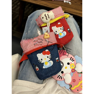 可爱kitty手提水桶笔袋学生党手机包化妆收纳包大容量百搭便携