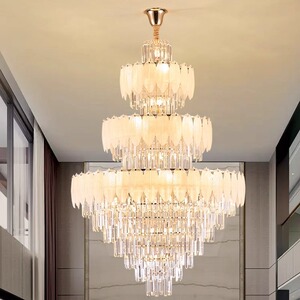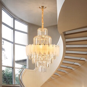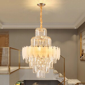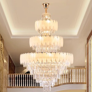 高端新款复式楼吊灯现代轻奢中空楼中楼大厅挑空豪华水晶别墅客厅