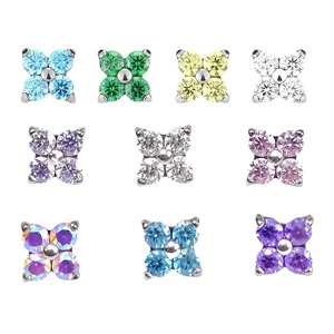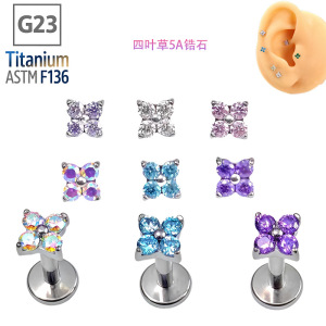 G23钛合金迷你四叶草锆石/蛋白石耳钉养耳耳骨钉唇钉鼻钉批发