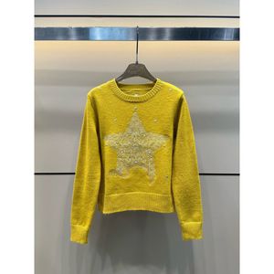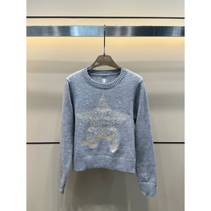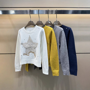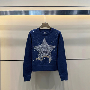 25早秋新款系列款时尚重工万针刺绣星星烫钻套头毛衣女款