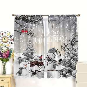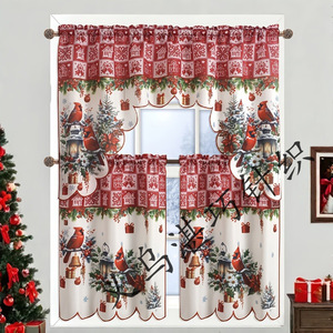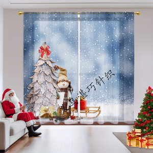 外贸圣诞节窗帘圣诞雪花遮光长方形美化装饰布艺成品美式装饰窗帘
