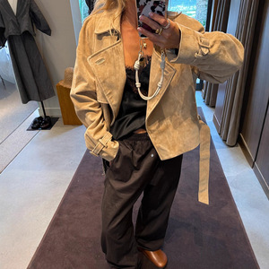 欧美跨境女装2025春秋新款休闲翻领夹克外套腰带宽松短款百搭上衣