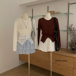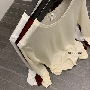 WGWE6717纯色薄款微透修身长袖T恤打底衫上衣