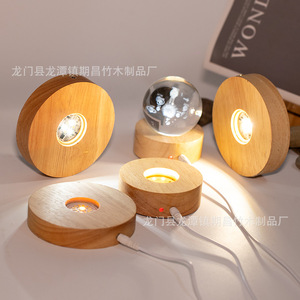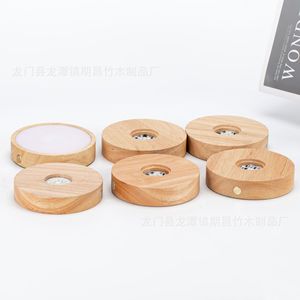 现货供应充电款发光木底座灯饰配件实木底座暖光桌面摆件小夜灯座
