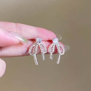 抖音爆款百搭气质蝴蝶结耳钉小众高级感耳饰甜美简约爱心超仙耳环