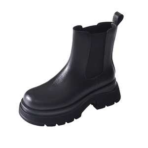 马丁靴女2025新款英伦圆头粗跟厚底靴子女单靴切尔西黑色烟筒短靴