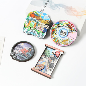 城市木质冰箱贴定制文创景区旅游景点diy磁吸贴纪念礼品冰箱贴