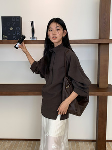 CLEAN SPACE松弛感立领衬衣女2025十三行秋季新款优雅衬衫女56817