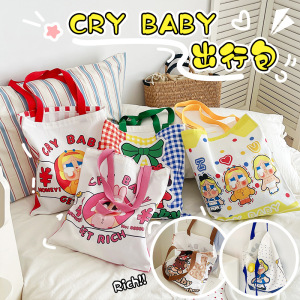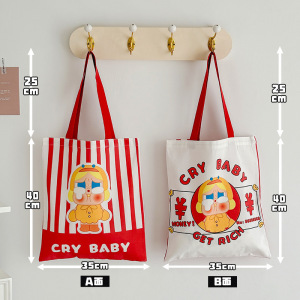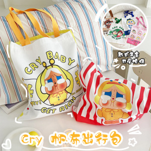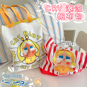 泡泡玛特周边哭娃卡通帆布包包女单肩包手提袋大容量托特包学生包