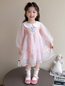 女童连衣裙春秋洋气2025新款女宝宝秋季长袖公主网纱裙子秋装时髦
