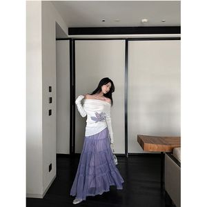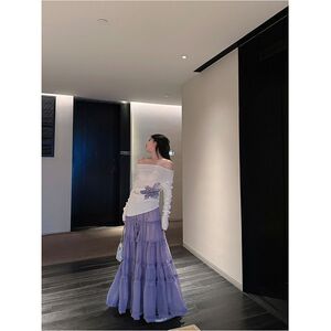香芋紫层叠感蛋糕裙透气网纱半身裙女夏季新款印花显瘦上衣套装潮