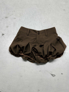 2025夏季时尚辣妹街头风花苞裙纯色低腰半身裙褶皱包臀泡泡短裙