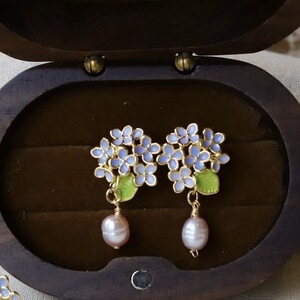 新中式紫色绣球花朵流苏耳钉国风配饰高级感优雅气质简约百搭耳饰