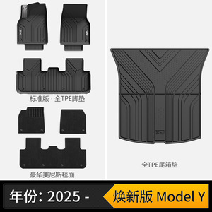 【车规级注塑】2025款 焕新版model Y全TPE脚垫+雪妮丝厚毯+尾箱垫