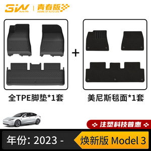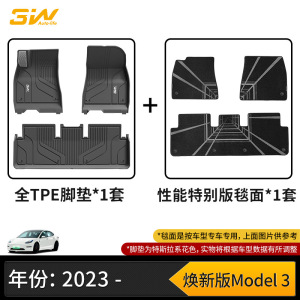 【车规级注塑】23-25款 焕新版model 3 全TPE脚垫+性能特别版毯