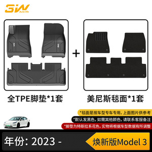 【车规级注塑】23-25款 焕新版model 3 全TPE脚垫+雪尼斯毯面【更柔软更舒适】