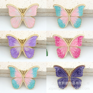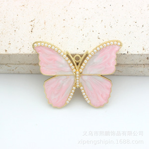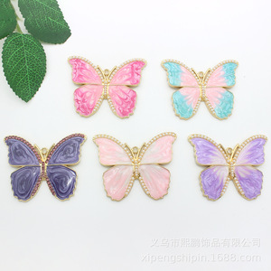 diy饰品配件轻奢风点珍珠渐变色蝴蝶超仙合金滴油吊坠挂件钥匙扣