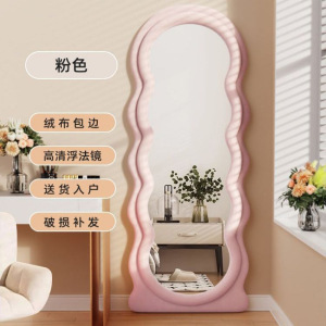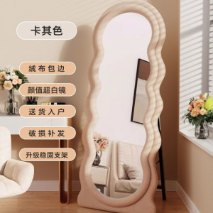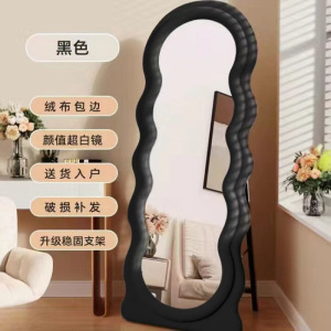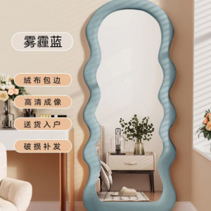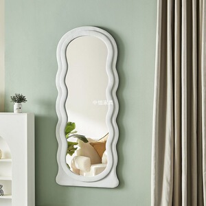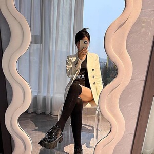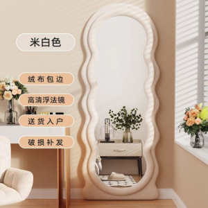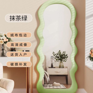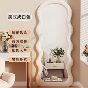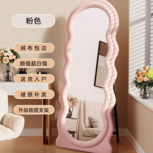 网红波浪全身镜落地镜奶油ins风试衣穿衣镜家用女生卧室异形镜子