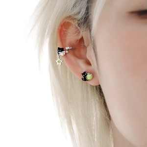 敲可爱!黑猫青苹果耳钉小众甜酷高级耳环耳饰