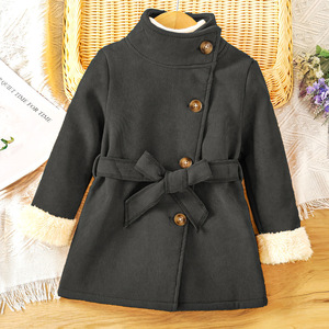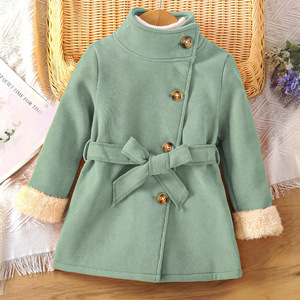EW外贸童装 中小童新款女童秋款纯色中高领毛绒袖风衣外套WT75