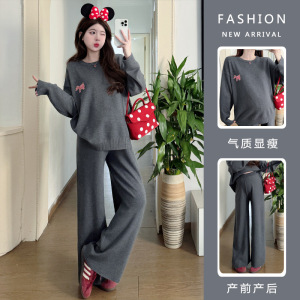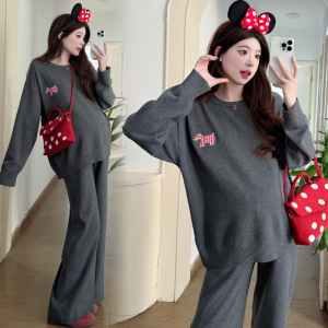 孕妇装新款早秋慵懒风套装韩版卡通刺绣针织衫孕妇宽松休闲两件套
