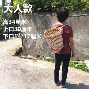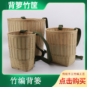 竹编背篓采摘茶叶特大号买菜双肩背箩竹筐收纳篮竹青精编承
