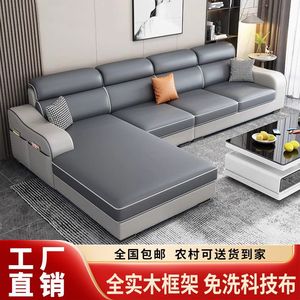 新款科技布沙发简约客厅组合布艺沙发两用大小户型出租房折叠L型
