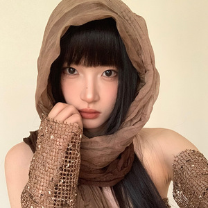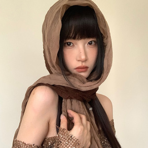 复古渐变民族风褶皱头巾女西部废土风沙漠丝巾拍照辣妹风围巾披肩