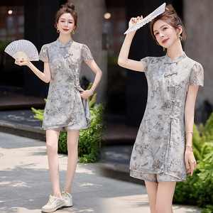 小个子新中式国风提花短裤套装2025夏季洋气减龄改良旗袍两件套女