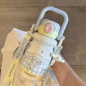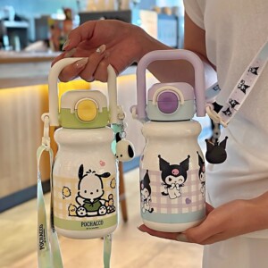 库洛米保温杯小女孩学生上学专用斜跨吸管水杯幼儿园宝宝小肚水壶
