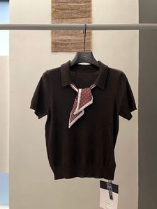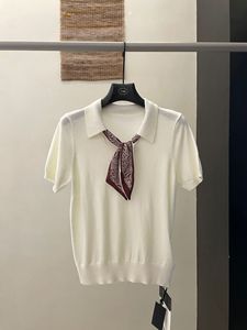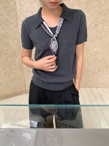 FONE简禾2025秋季新款老钱风复古小众丝巾翻领短袖针织衫女58055