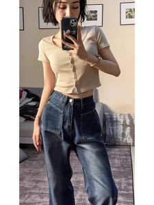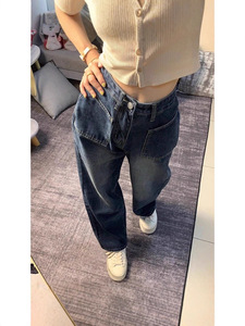 高腰牛仔裤女大码微胖妹妹遮胯宽松显瘦梨形身材九分阔腿裤潮ins