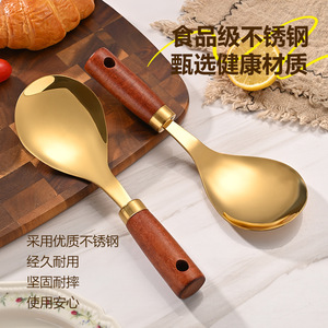 实木手柄不锈钢饭勺特厚防烫盛饭不粘饭勺子米饭家用打饭饭勺批发