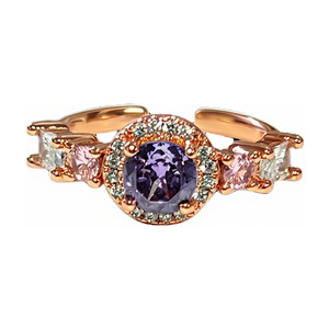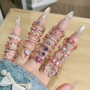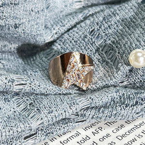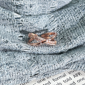 幻彩流金跨境热销玫瑰金色排钻几何戒指女简约时尚个性欧美风指环