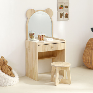 ins风韩国原木化妆台化妆凳套装卧室简约小型床头女孩仿真梳妆台