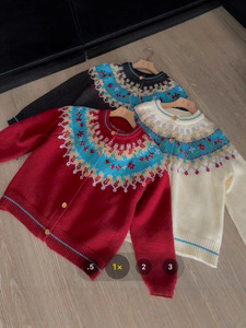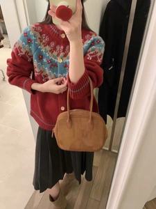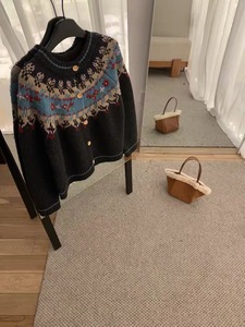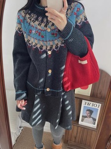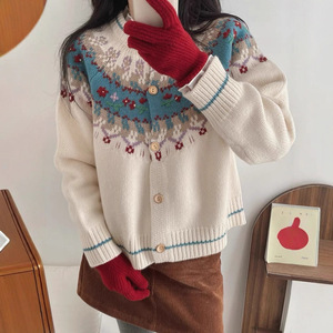 北欧费尔岛针织开衫复古提花甜美风单排扣秋冬季圣诞毛衣女装外套