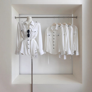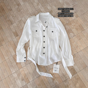 2025秋上新亚麻气质腰带白色长袖休闲白衬衫上衣
