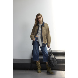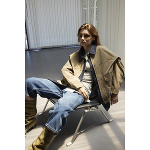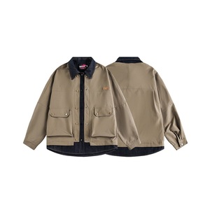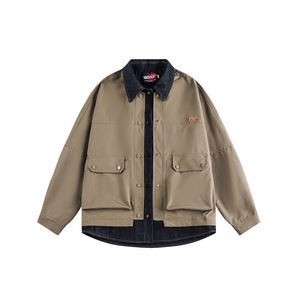 BOXXX秋季新款设计感潮牌拼接牛仔翻领工装夹克男女情侣外套WT58