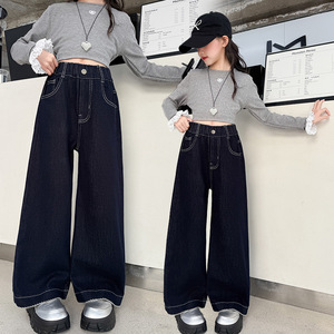 女童牛仔裤2025秋季新款阔腿裤儿童秋装直筒裤女孩春秋款宽松裤子