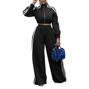 AL292亚马逊独立站欧美女装运动卫衣套装条纹夹克两件套宽松秋冬