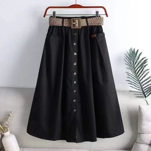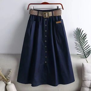 2025夏季纯棉松紧腰半身裙韩版时尚减龄遮肉显瘦中长款口袋a字裙