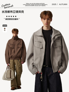 CATTEE美式重磅水洗立领工装哈灵顿夹克男女短款宽松cleanfit外套